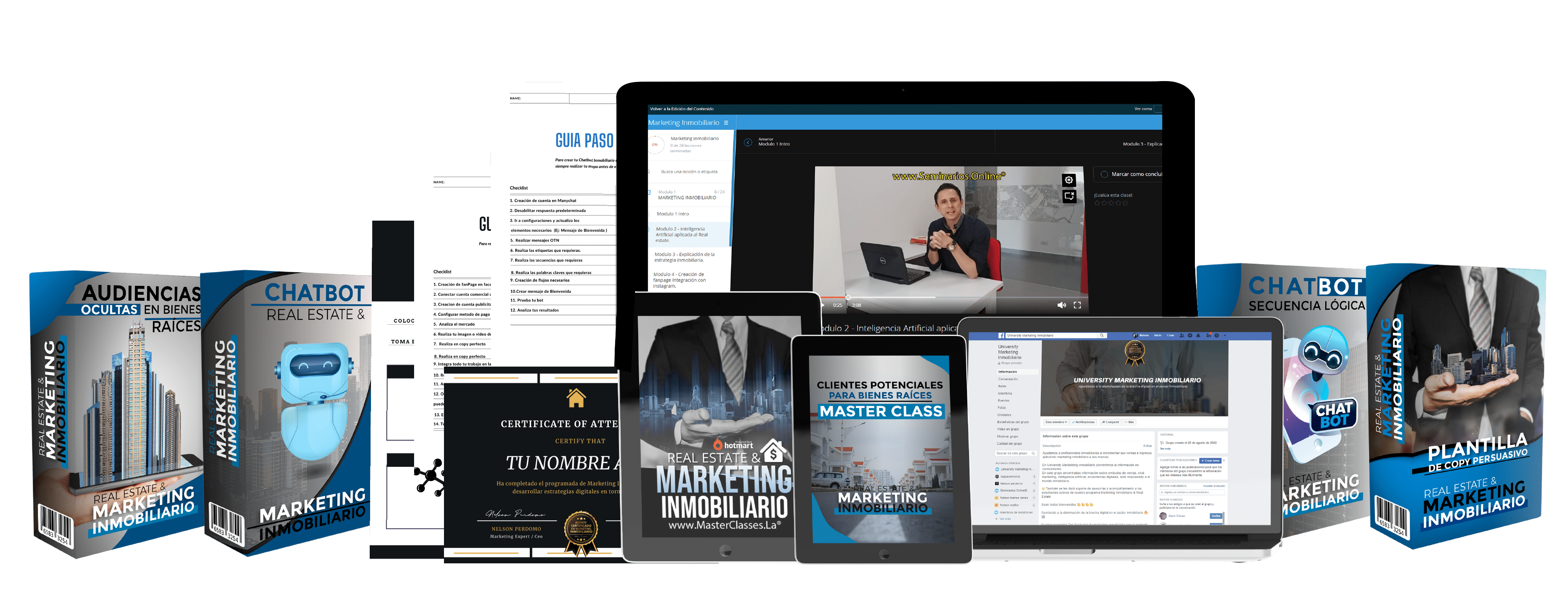 Son 24 modulos que donde aprenderás todo lo que necesitas saber y tener para crear un ecosistema en torno a tu marca inmobiliaria y recibir prospectos diariamente interezados en comprar, vender o rentar bienes inmuebles.
